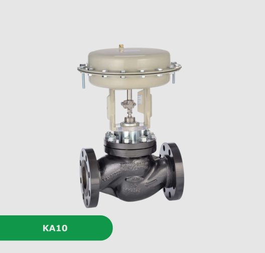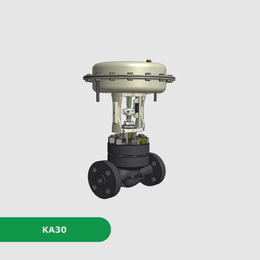 As Válvulas de Controle das Séries KA10, KA20 e KA30 são válvulas tipo globo disponíveis em aço carbono, inoxidável e materiais sob encomenda, projetadas para controlar fluidos como vapor, água e gases. A KA10 opera com pressões de até 300#, possui dimensões de 1/2” a 8” e conta com atuadores pneumáticos, de pistão (ON-OFF) e elétricos; a KA20 suporta pressões de até 105 bar, também com dimensões de 1/2” a 8” e características antirruído e anti-cavitação; e a KA30 é robusta, suportando até 260 bar com dimensões de 1” a 2” e sedes reduzidas. Todas possuem o padrão de segurança 94/9/EC "ATEX" II 2 G IIC c X Gb / II 2 D IIIC c X Db.